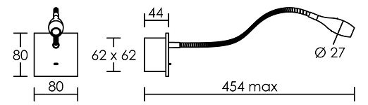 Liseuse LED flexible pour tête de lit, couleurs gris ou noir. Puissance 2.3W (110Lm), 230V, faisceau 40°. Cette applique (montage dans une boite d'encastrement) est en acier et aluminium. ARIC 5223, 51222